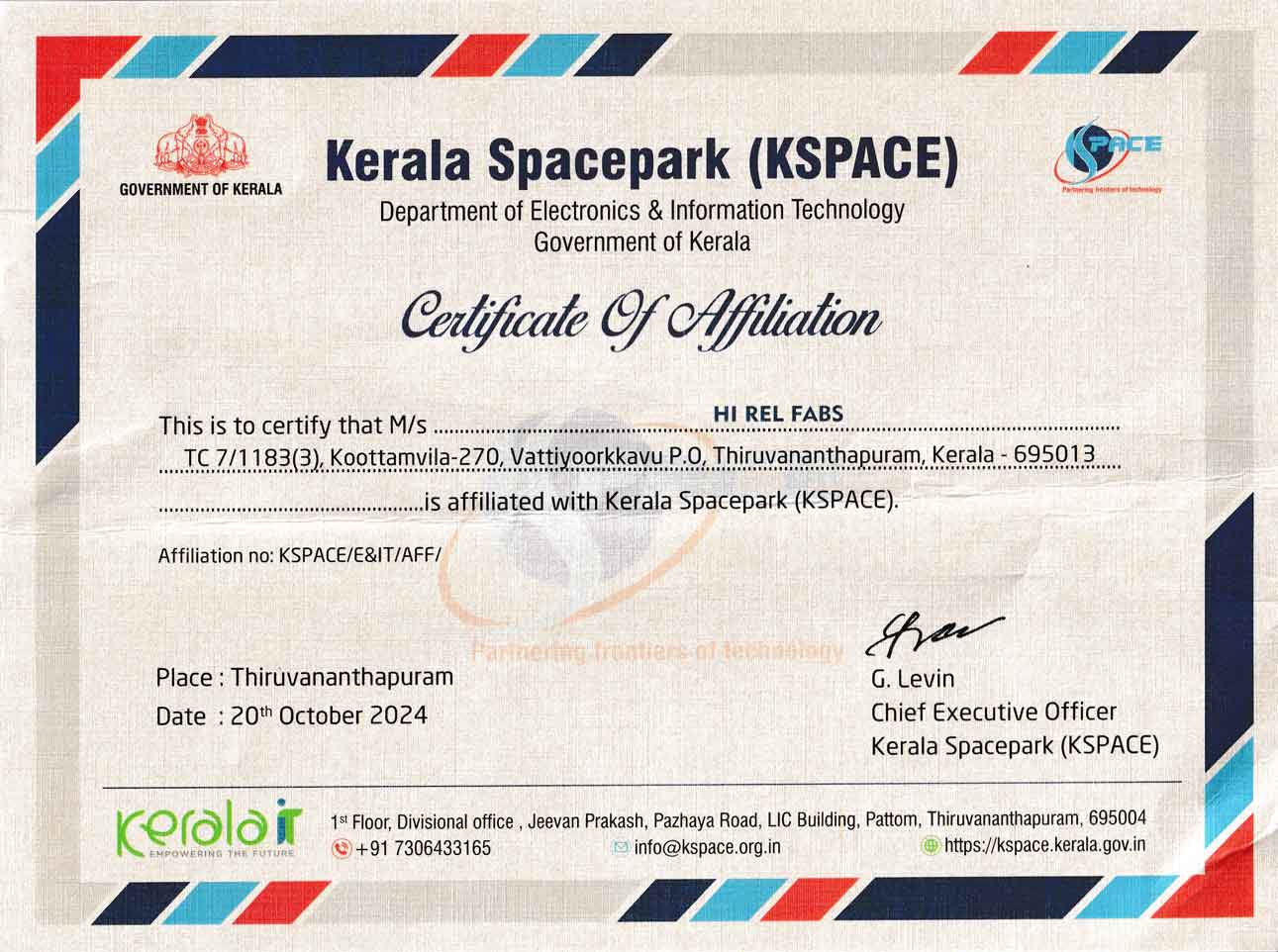 Reyan Aerospace Private Limited Plot No. 49B, KINFRA Film & Video Park, Kazhakoottam, Thiruvananthapuram - 695585